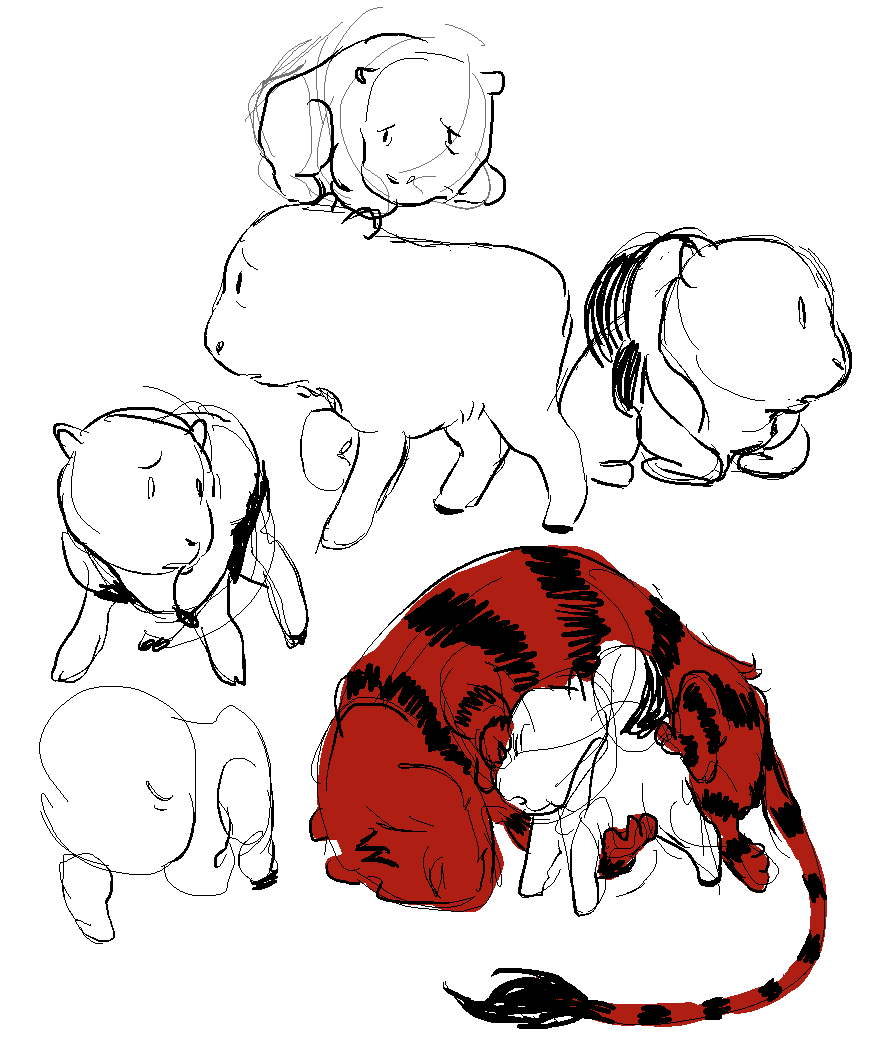 marcy as a tiger and finn as a baby ungulate of some sort.. cant remember if bby bovine or lamb