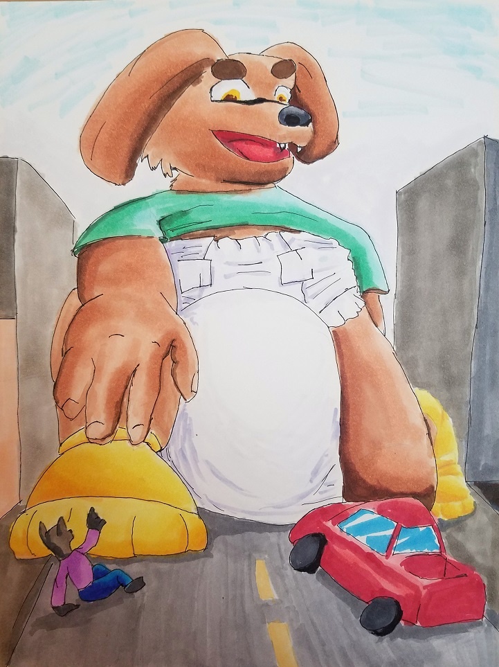 The prompt for this one was "overgrown." I'd already done a couple vegetation-themed ones, so I decided to draw an overgrown babyfur! I've never drawn macro before, so the perspective was hard to cope with. Added some marker on this one.
