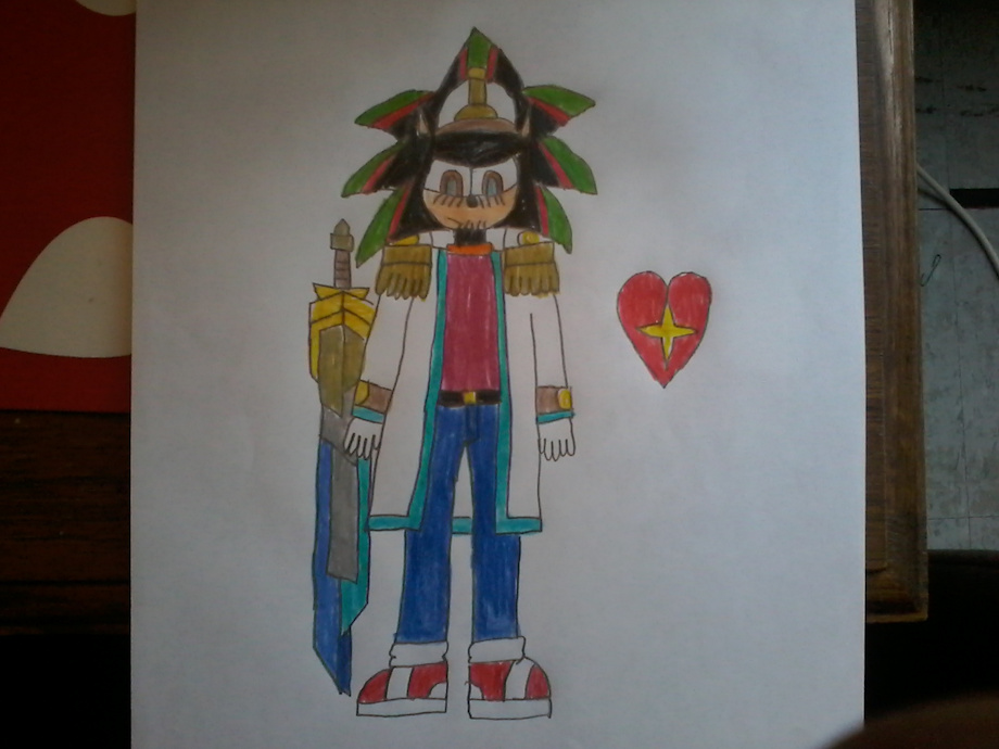 "After he finally purging both Travor and Sephiroth out from his soul when their final plan nearly successed, Trey is somewhat reborn which now he got red stripes within green stripes on the quills, reference that he had Shadow's DNA within him and metallic blue within his light brown eyes which also referred his True Hyper Form. His clothes is slightly changed with no badges and wielding the Star Saber but however, his soul was altered which he is no longer use Megalo power and had a piece of Sir Johnny's soul within his soul but he gain new power which is hadn't tap into it yet. He does had a harem of 50 or 60 girls but only selected girls that connect and loved hit his heart while had one sister, one step sister and one step mother with a father. In the end, he may be a military commander, super hero and a immortal god but he is still mortal to the core with his past is now erased and finally moving on to choose his new path... also he had a copy named Kelly Darcy after the whole event who his bio and art is coming up next." - Universe 1029