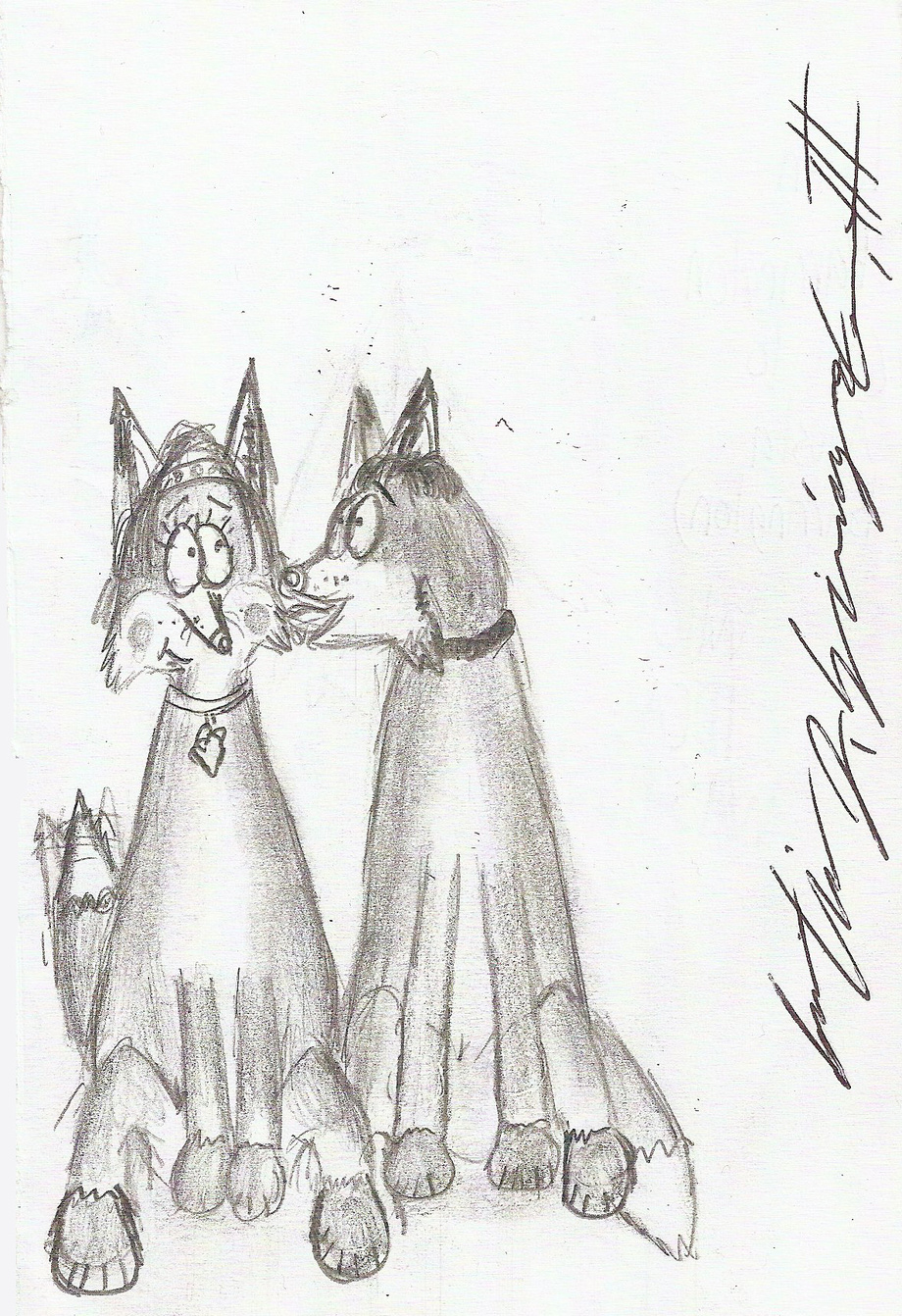 "This morning, My cute husband, Victor, had licked me (kinda like a kiss for us foxes) as a-- well, a good greetin' for Valentines Day. To all the lovely couples (including to the lovely couples who live near where I live in Fox Chase) Happy Valentine's Day!"