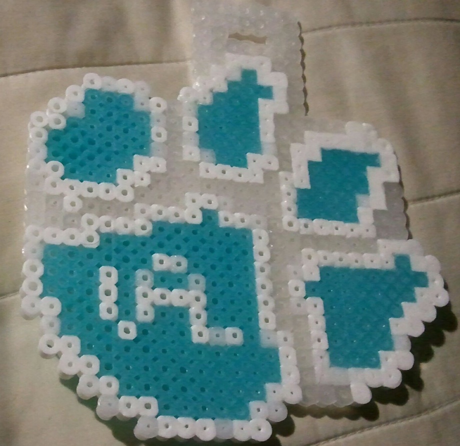 This is a paw print perler badge, Val based it off of random pictures of paw prints.