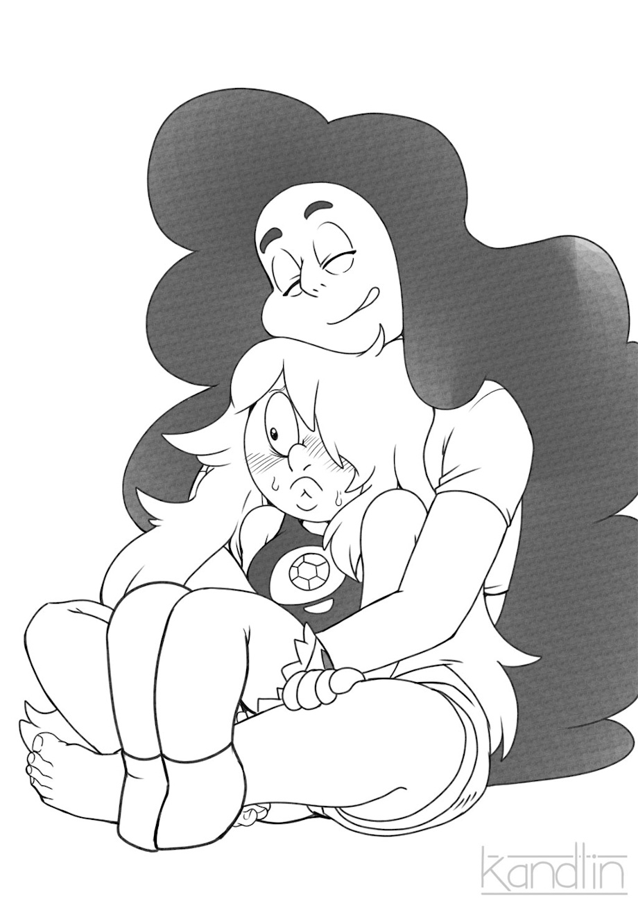 Sketch Stream Commission for Whitewhiskey of Stevonie trying to snuggle up with an embarassed Amythest