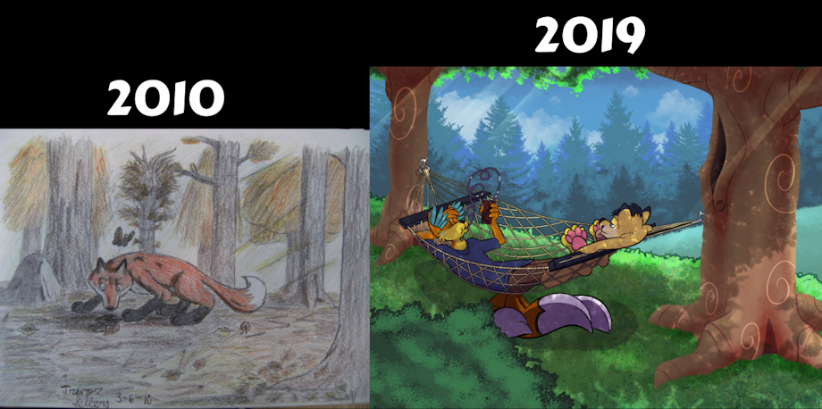 Comparison of my art from 2010 to 2019. This is the only picture I could find that I had posted online from 2010. I'm amazed I was able to go back that far, but glad I could nab somethin'! I'd say I've come a long way!