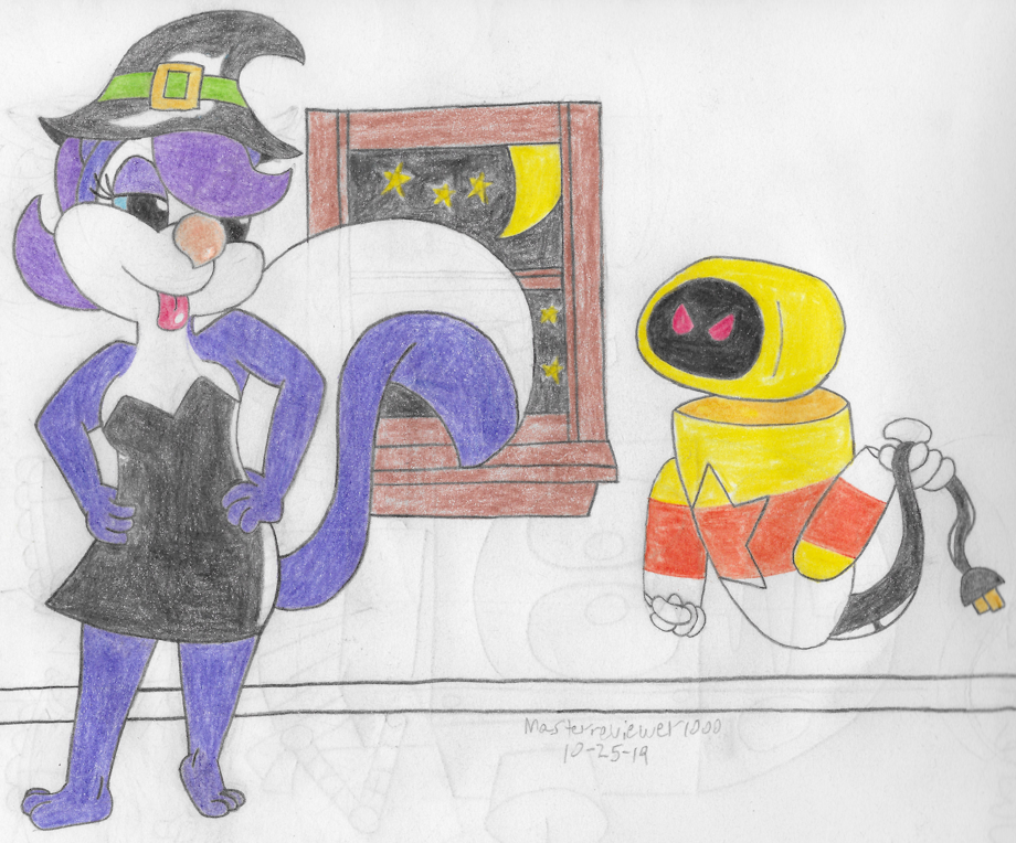 Here a drawing I did for #FiFiFriday just right for this time for the season. Fifi has once again painted over poor Robbie to play a "small" role to fit the Halloween spirit and Robbie shows once again how much he does not like being use in this matter what so ever. (I really should draw Robbie more often and in least not the butt of most joke).