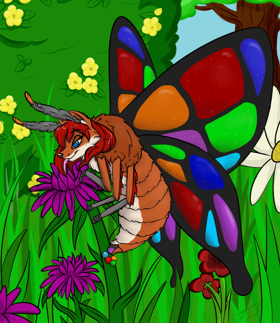 I are fox moff. I lick the nectar and lay the moff eggies.