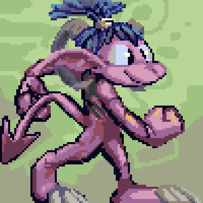 for nafradorf fumblewip, a somewhat experimental animated pixel icon robision of a very suspicious imp