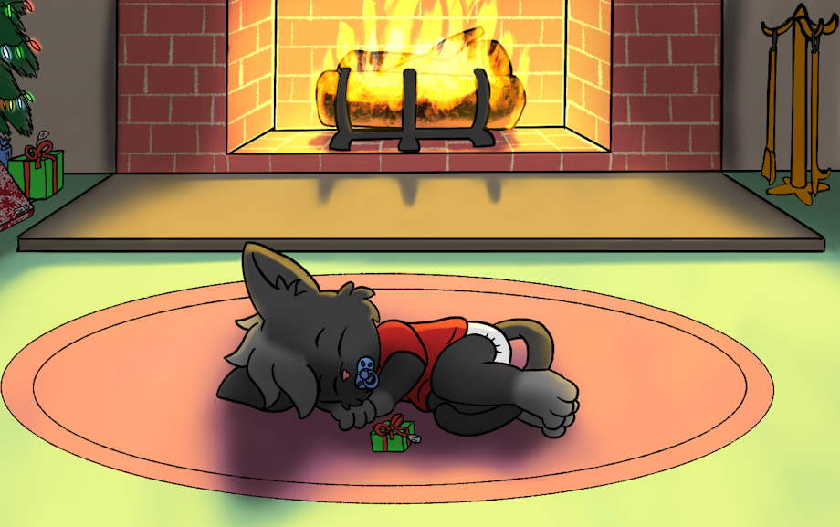 My fursona Kenny sleeping near the fire hoping to catch Santa claws.