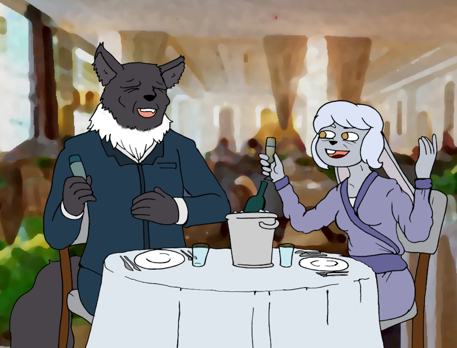 Commission for :@boony of his Dilf Maine Coon taking Karen out for a nice dinner.