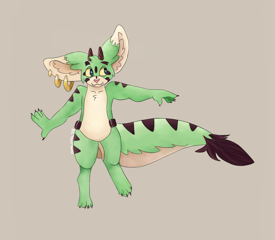 First upload of the decade! I adopted this adorable green guy from https://inkbunny.net/Yurusa back in december, and I’ve been itching to do something with him. I ended up trying to be a little bit experimental with how to use digital brushes.