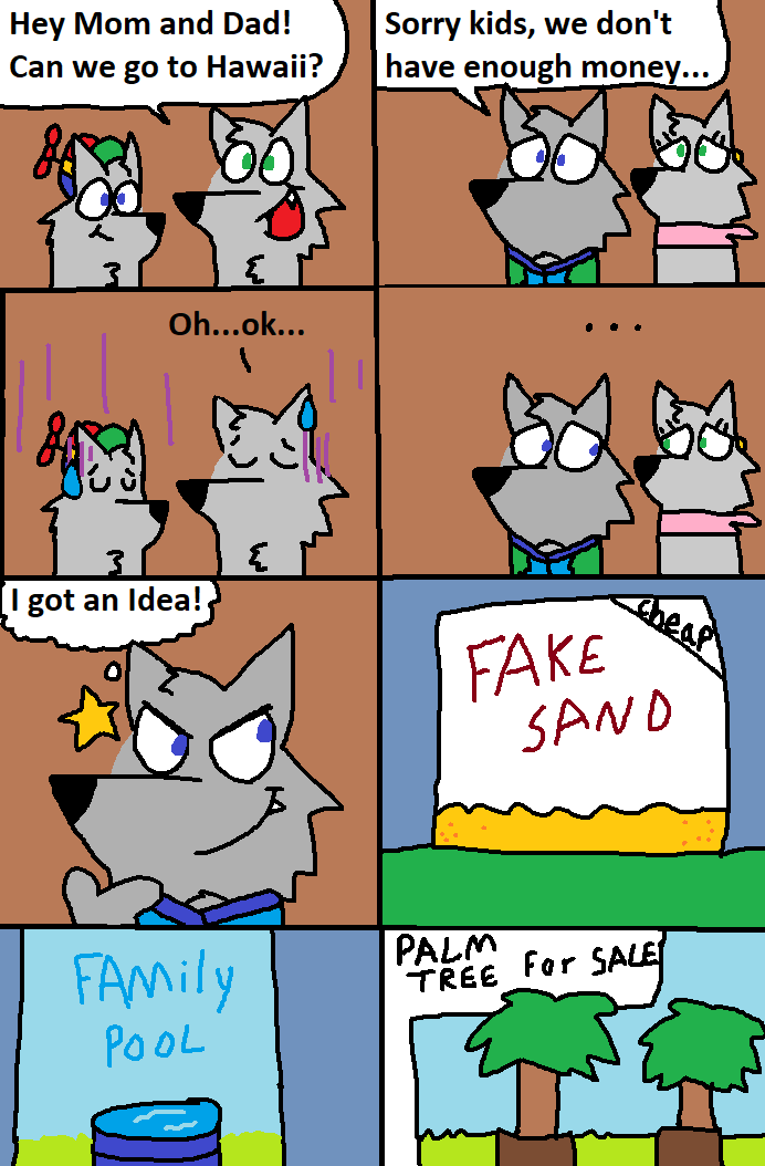 Very short comic about the wolf family having a Hawaii Vacation in their Backyard!