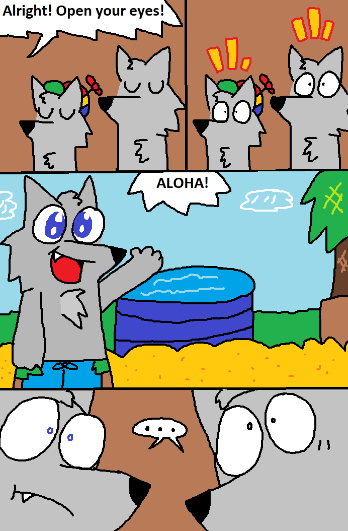 Very short comic about the wolf family having a Hawaii Vacation in their Backyard!