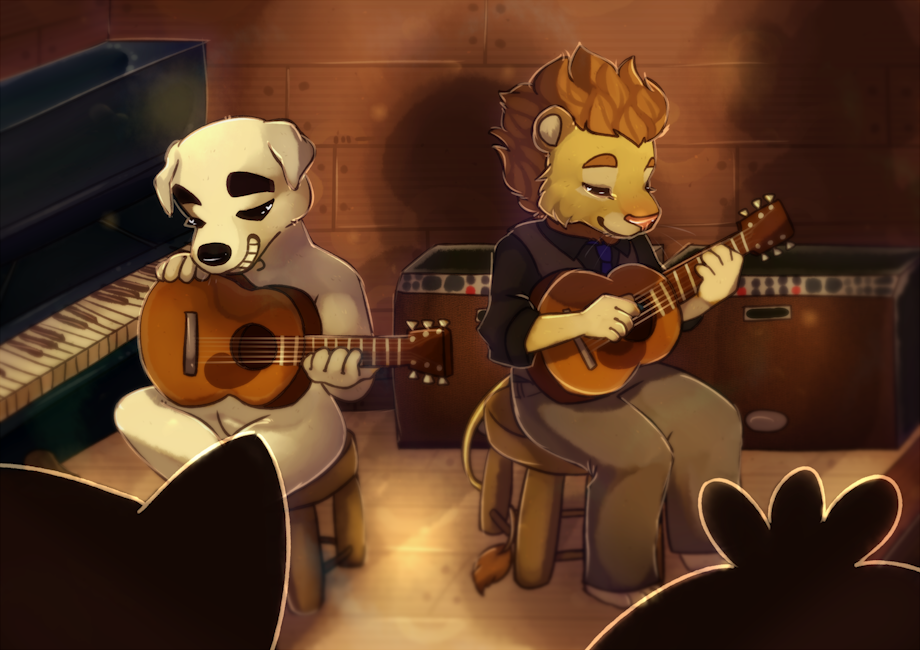 It is 8:00 PM and the crowd is all here, coffee in hands and all smiles and cheer. Tonight is the night, so special for me, a one of a kind gig with another musician doggy. For years I have listened and supported K.K, Totakeke to some but no record labels to get in the way. We grab our guitars as the lights lower down, and jam into the night for all of the town. And at the end of the show we pack up and shake paws, ¨I dig your groove lion dude, until next time!¨