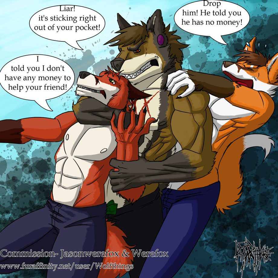 Chewy came onto me knowing that I have money somewhere on me to get me to help his friend out. I denied having any money for me only to be strangled by him and for Werefox to try and get him off of me. I pleaded stating that I have no money for him but it looks like he found it in my back pocket. -_-