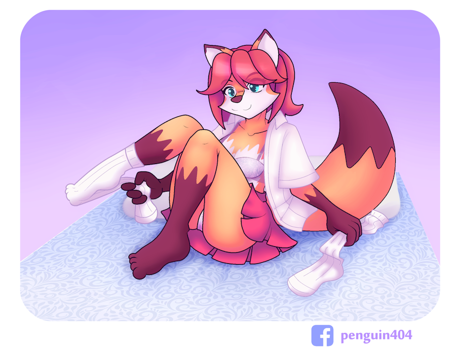 Hello everyone, we have Monica the fox taking of white socks :)
