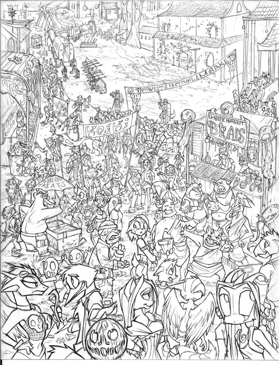 A lotta detail- but we just can't stop! One of Dreamkeeper's trademark crowd scenes, packed with extras, from way back in Volume 2. Free to read on our site or mobile app, because we love you.