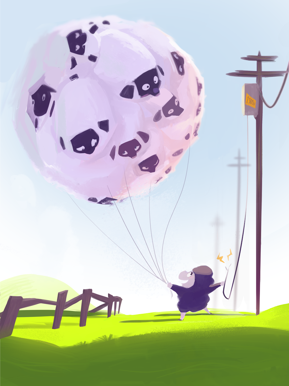 I'm glad you mentioned >.<. I was thinking about turning it into an entire story. Just think of electricity attaching a bunch of sheep to a balloon.