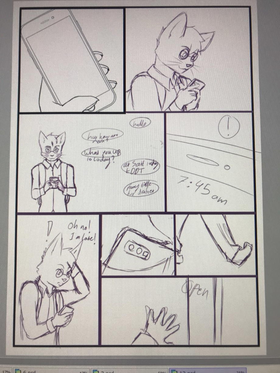 A response. I should just quickly reply back so he knows I have seen it and do. Crap I’m running late! Still need to get to class. Drawn by Rayray Wolfie.