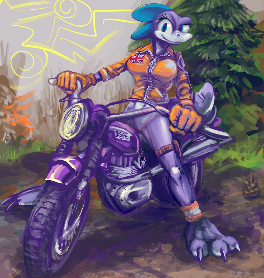 My semi-annual unprovoked, debatably-accurate drawing of the lizard belonging to the person called Koshizuu. Supposedly this lizard rides a motorcycle so I just went and drew a motorcycle without considering that it might not be this one! I don't know if cartoon lizards understand human politics but this one certainly is only going to leave the European Union in style, and apparently without a helmet. In fact the drawing is from months ago and my completing it today is completely unplanned. Why would I start now?