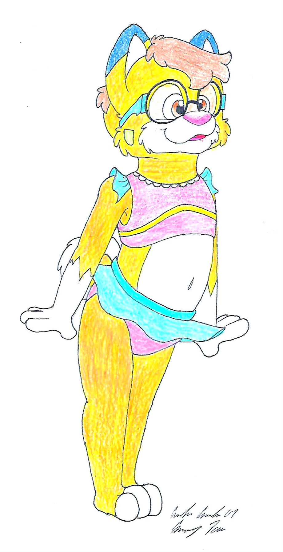 Snowy wearing a girls swimsuit because that´s something her love to wear.