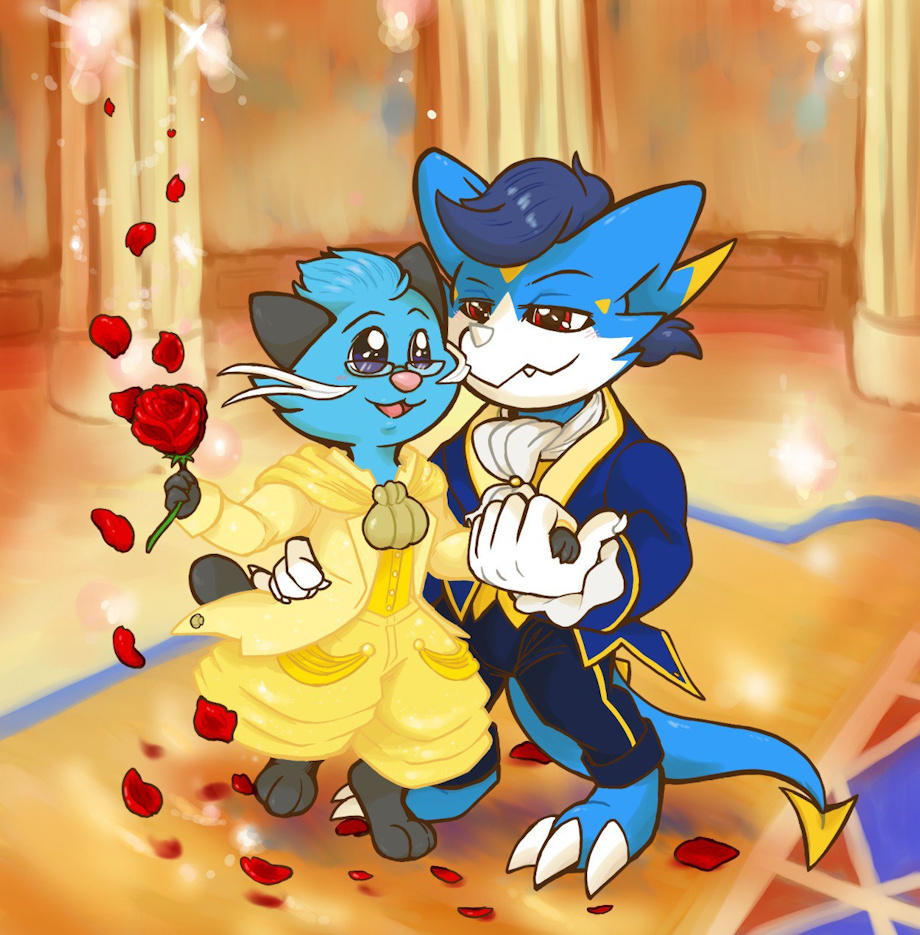 It was my boyfriends birthday last month and so I got him this picture based off of Disney's Beauty and the Beast, a movie that holds some significance for he and I. Yami is taking his beloved on the dance floor to celebrate his birthday, I say they both clean up very nicely!