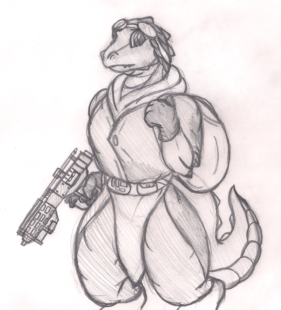 Meet Orden Brey. A reptilian species not unlike the trandotians, though unlike the trandotians, they have tails, and a particular fondness for tree top lifestyles, as their home planet's forests are tangles of branches and trunks that ark and curve in a network that results in very elaborate webs of tree branches to navigate through. As such, their legs are particularly strong, enabling them to leap great heights with relative ease.