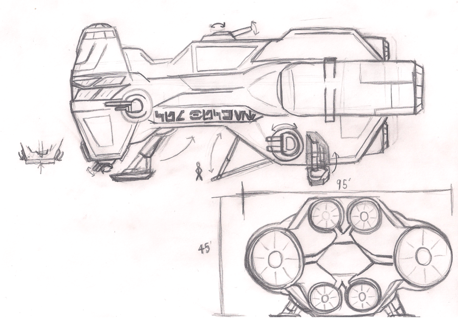 on the second page, is the Freighter that was originally sent for an automated delivery to take cargo away to meet up with a small convoy to take salvage. Of course, when the ship met up with the convoy, the lead ship would discover that it wasn't automated any more, and instead being piloted by young Orden Brey. Deciding to rather not question it, the ship lead let him join the convoy to sell their loads of cargo, and Orden assumed ownership of the Hammerhead freighter.