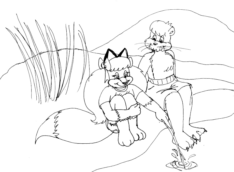 Little Vicky Gatterpaw playing in a nearby stream with an otter friend.