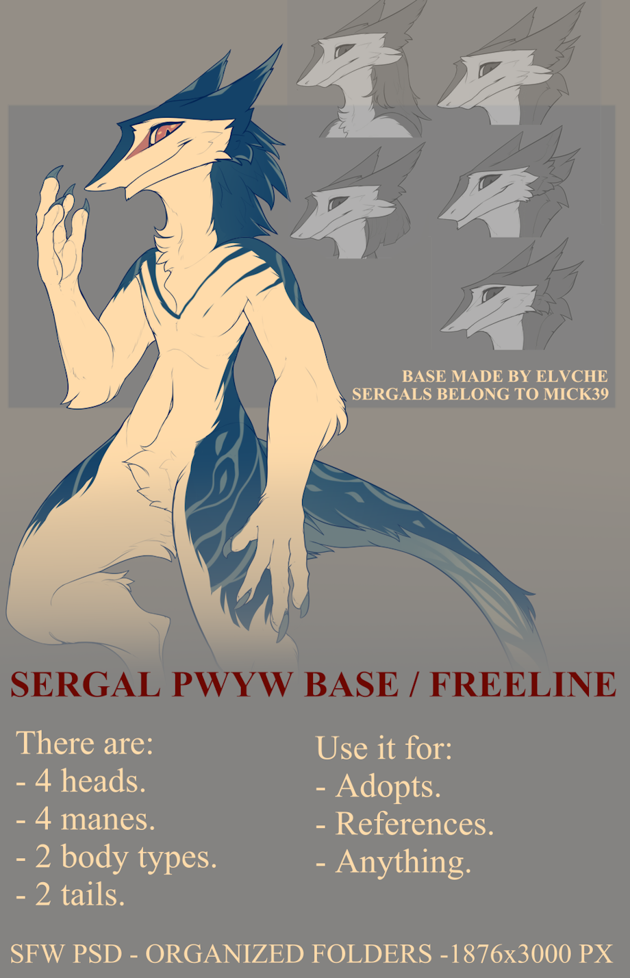 Today was a great day! I finally drew something for myself. But I want to share it with you, too! It's pwyw base / freeline for sergal characters uwu Feel free to use it for adopts, references and character concept images. Share it with your sergal and non-sergal friends!