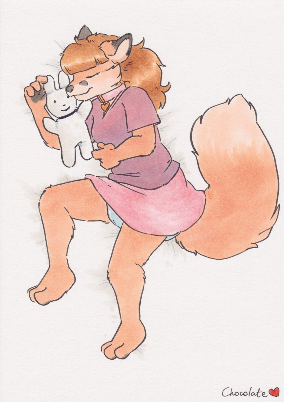 A soft, cushy Vulpine settled in for a cozy nap with her favourite plushie.