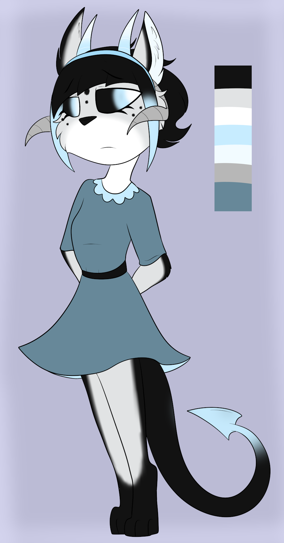 They are near identical to each other, just male and female versions. Alexander is a foot taller than his sister. They have red and black fur, a long red tail with a big tuffed of black fur, curved back horns, and black and grey eyes.