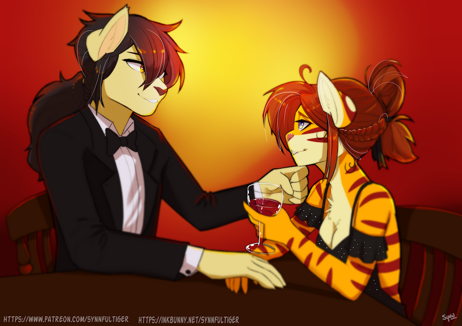 Her dress is gorgeous! Such rich luxurious elegance looks bad-ass paired up with those super-sexy tigress stripes. <3