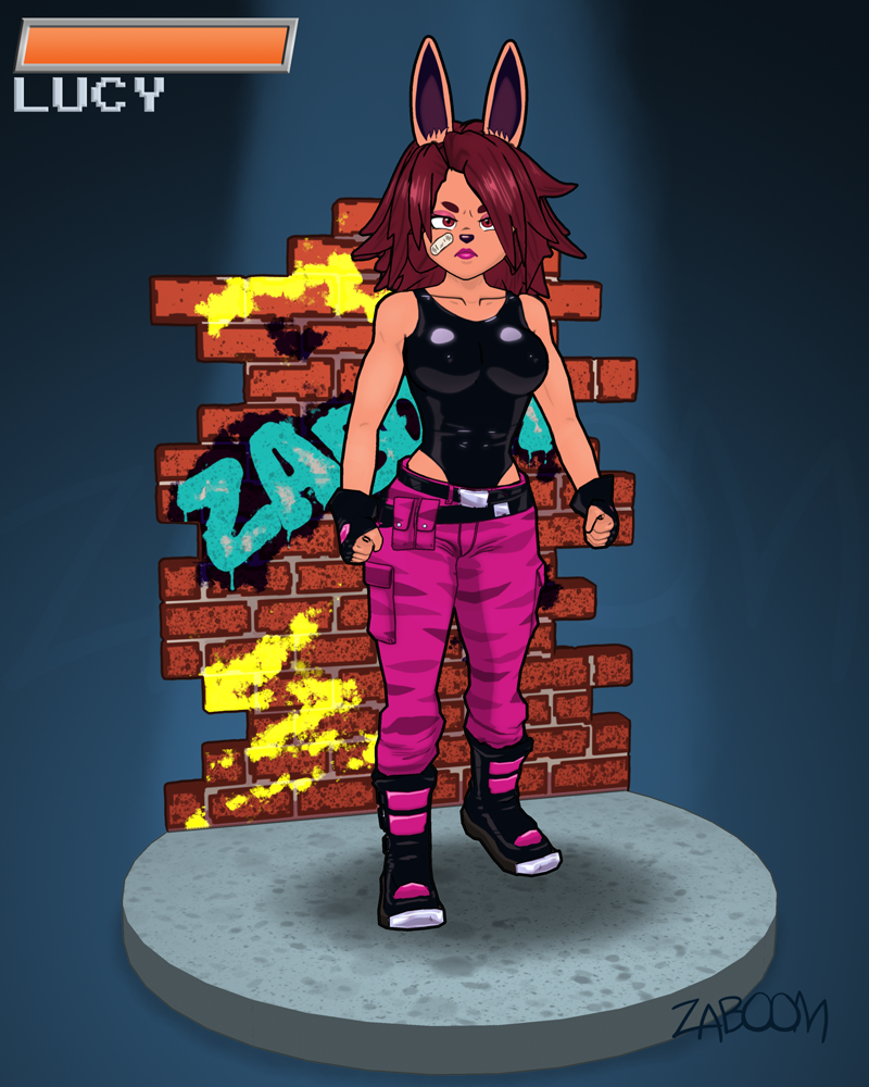 I started working on some 3D models for original characters in a beat-em-up style game project. Here's Lucy, a feisty punk and one of the first/lower-level enemies you'd be encountering in your quest to rid the streets of crime! She's rigged for fighting, and plenty of boob/ass jiggling too. ;-)