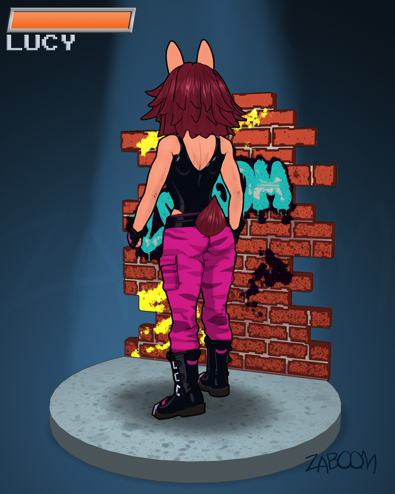 I started working on some 3D models for original characters in a beat-em-up style game project. Here's Lucy, a feisty punk and one of the first/lower-level enemies you'd be encountering in your quest to rid the streets of crime! She's rigged for fighting, and plenty of boob/ass jiggling too. ;-)