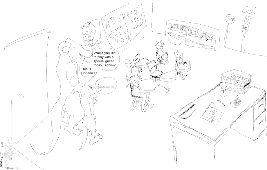 Seems a new student has visited for the day and the principle or teacher needs somebody to play with him and keep him company for a while. Tannim is somewhat volunteered. I doubt he'll mind much but he wasn't sure how to respond to the quiet comment.