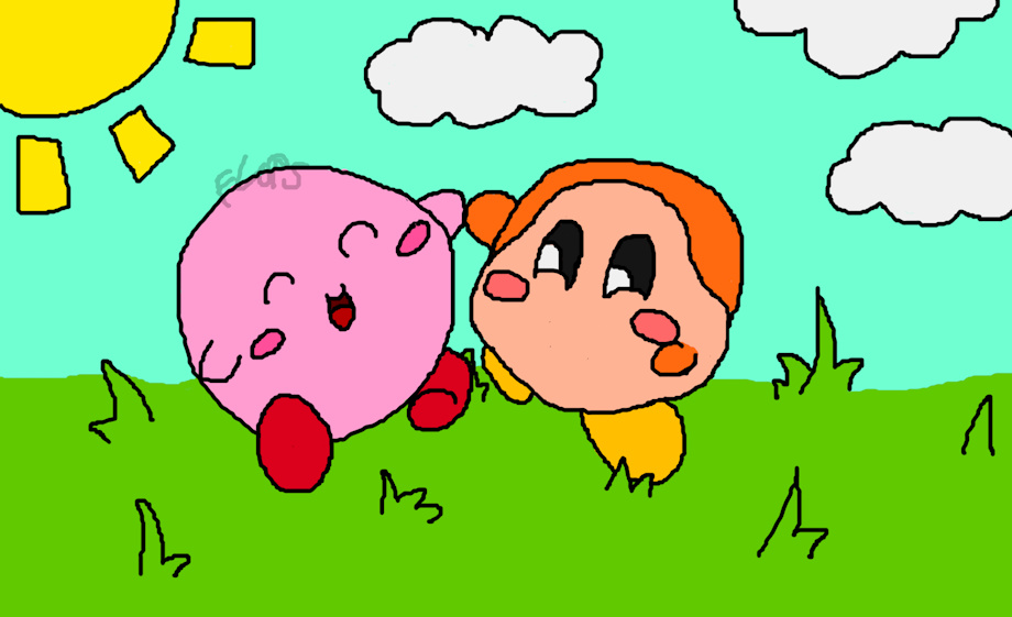 i feel like i dont draw kirby enough although i love the character but just drawing them holding a heart would be too easy and boring and i have already done it a lot so instead i thought up of this cute scene which doesn't have to be valentines but it was intended for that originally. being with friends is part of valentines ^w^