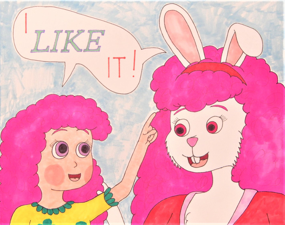 Here's my OC Dolly Melissa and SupremeKhi 's OC Candy admiring each other's soft curly pink hairdo's.