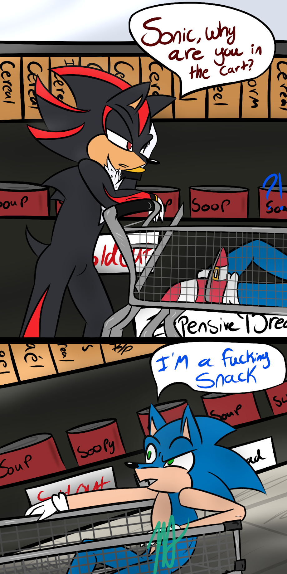 i can imagine shadow giving sonic a death glare for that one but not saying anything