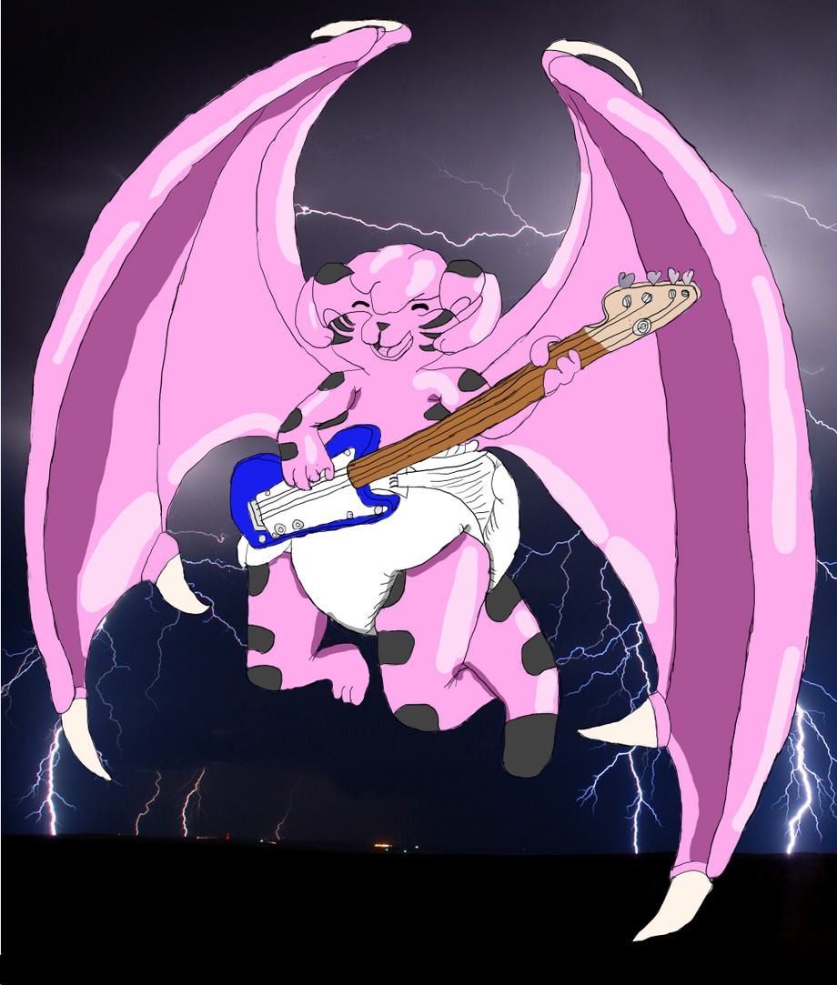 Tried something new with the background this time. I wanted something to feel like a metal album cover, and I could never draw that kind of background but thought you know? Lightning is pretty metal, and to prove latex is better I'll put the rubber cub in the foreground and the lightning storm in the background! Lightning bounces off rubber!