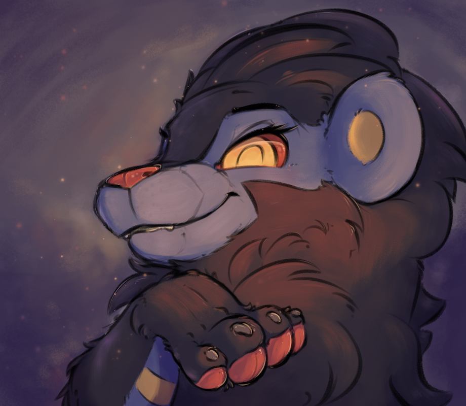 Been meaning to get a new icon-like thing, so I figured I might as well try and remake the existing one! Oh, and throwing in a whole bunch of experiments besides, like added fluff texture, overpainting, rougher stuff in general etc. I think it turned out pretty good, and quite the noticable difference! Oh yes, and let's not forget the pawpads, ofcourse.