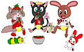 Sierra, Gemma, & Amy enjoying strawberries together along with their plushies, Fluttershy, Crub Caterpillar, & My Melody.