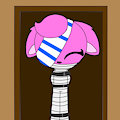 Looks like Katie got tied up again in bed, and looks like she doesn't have a bra. Oops~
