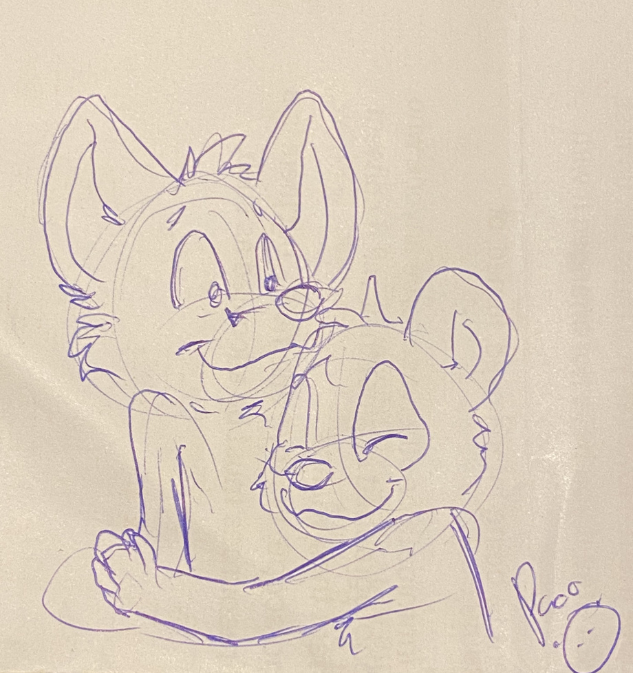 in #fursuit Lounge. I ask, he tell full commission, then he gift me a sketch. Awww thank you so much *hug tight* I am really happy 😌