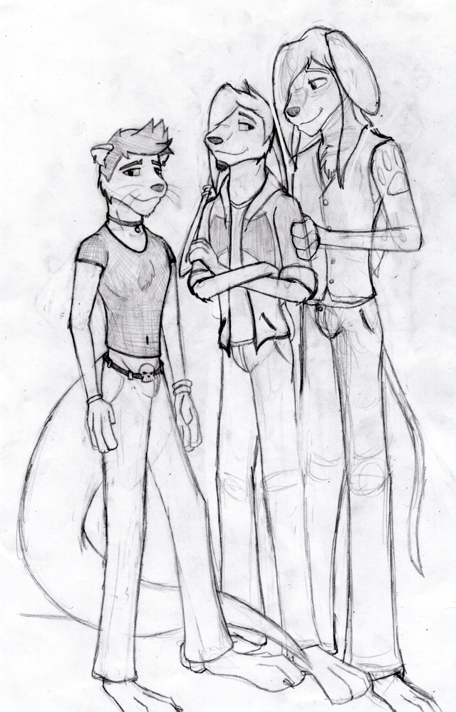 I drew this in between classes on Thursday. Had nothing better to do for the 2 and 1/2 hours I'm at school. Originally, only included the otter, who I'm still trying to figure out (no name, personality, backstory, nothing). Don't have any idea what I want to do with him besides add some tattoos or markings. (Totally open for suggestions) But then I felt that the page would be wasted if I only had one thing on it, so I added Pico and Remy (who's head was 5x bigger before I shrunk it on my computer) to fill space.