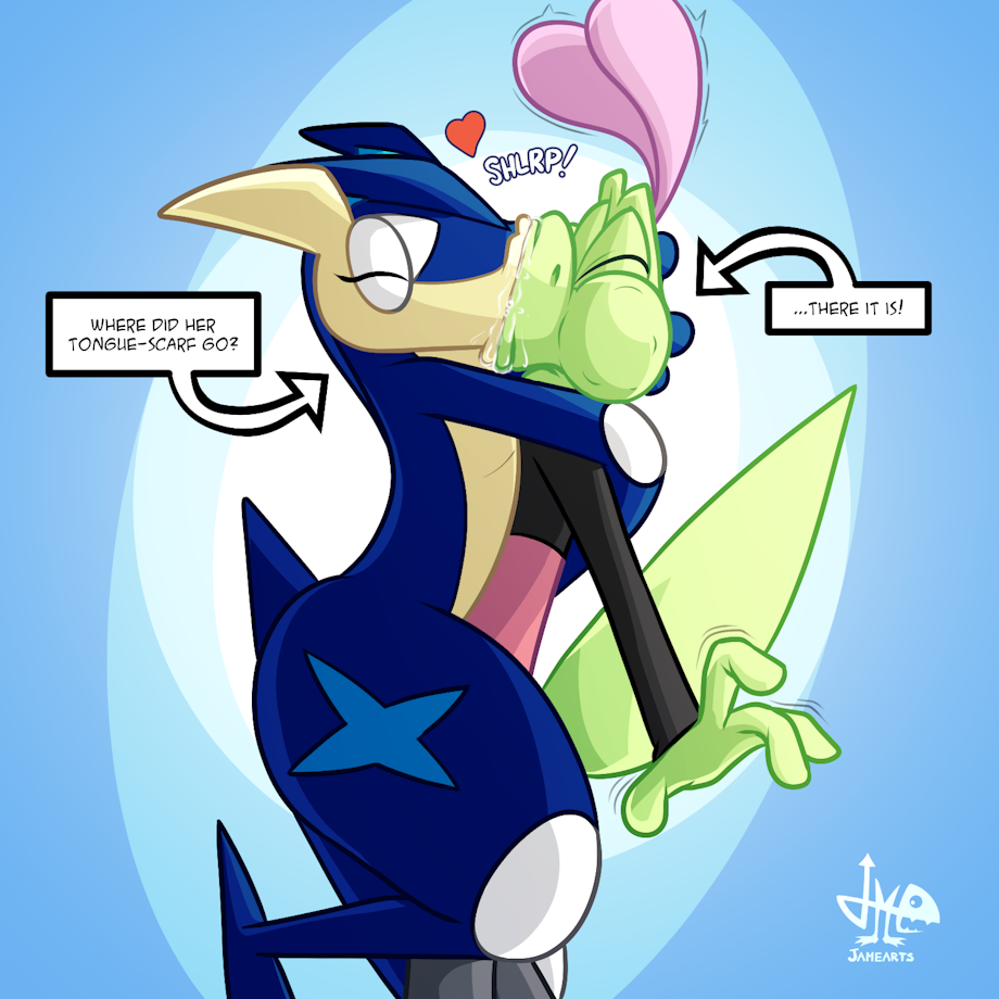 I guess it was about time until i drew Greninja kissing Jimmy with it's long tongue!