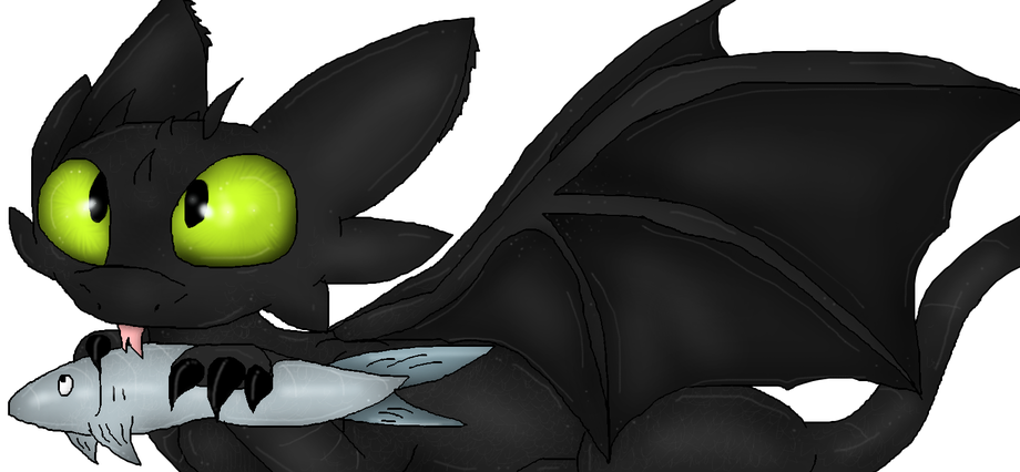 Just a random pic of chibi Toothless from HTTYD and fish XD