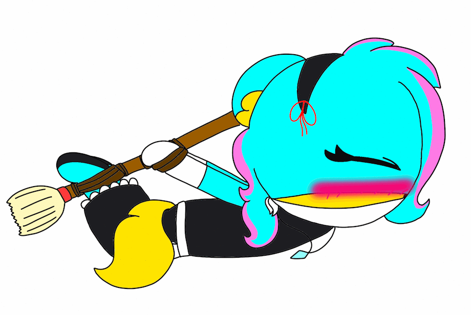 I made four gif versions of Katie as a maid struggling
