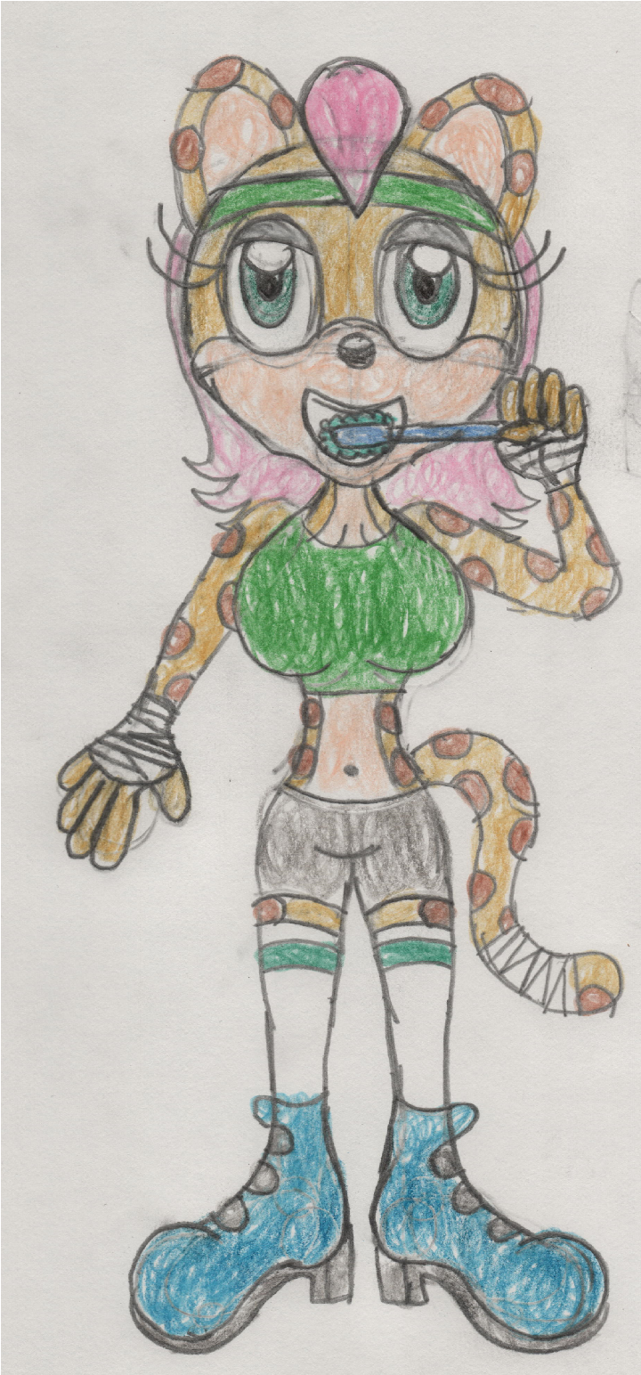 Just a pic of Riley the Jaguar brushing her teeth. She uses a sky blue toothbrush and mint toothpaste.