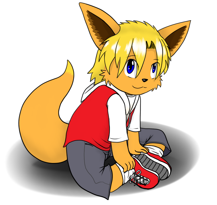 ! X3 And he turned out so adorably! He looks so happy and carefree and huggable! I think the way you shaded his markings in add to the cuteness even more :D And his tail looks so bushy and fluffy! X3 And I love how you draw characters' shorts/pants as well, they have a great amount of detail on them whilst still fitting well with your cute style :D