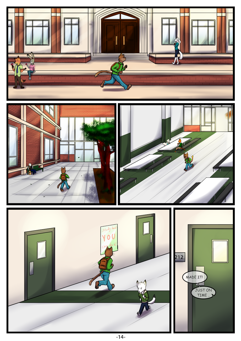 Running as fast as you can to get to class so your not late. Please beat the teacher, please be on time! Drawn by Rayray Wolfie. With guest appearances from Seth, Dustin, Alexander and Hellfire going left to right. Thanks for the support guys!