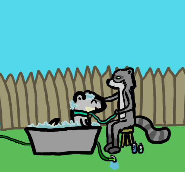 Heh... first time I think I put dialog in one of my pictures. More petplay! (With random raccoon character.)